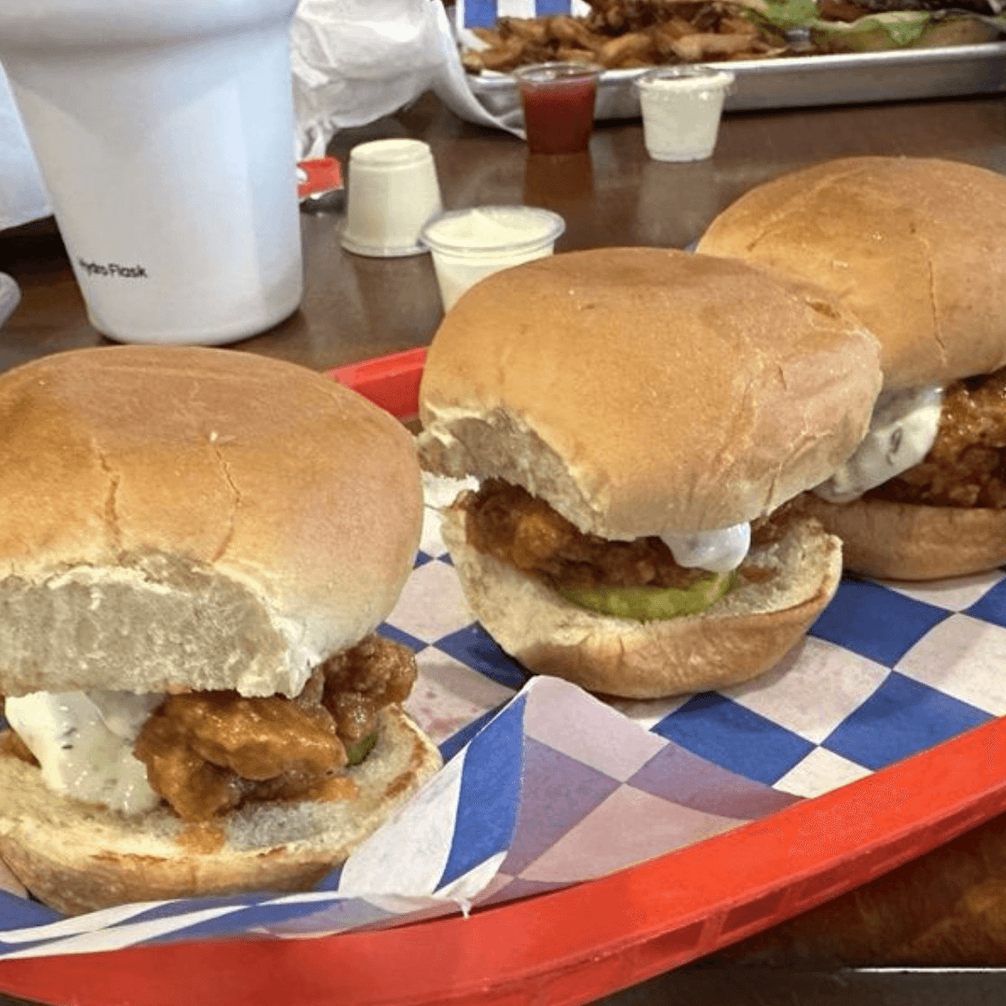 Fried Shrimp or Oysters, Remoulade, Lettuce, Tomato, Pickles